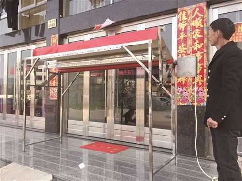 介绍完后,蔡胜利和侄子一起将晾衣架搬到了大门外,“我来给你实际演示一下”。说完,蔡胜利跑进洗手间,将手放在水龙头下面淋湿,然后回到晾衣架旁,将手上的水滴到一个金属装置上。第一滴水刚落下去,晾衣架上的篷布就开始缓缓伸展出来,很快遮住了整个晾衣架。